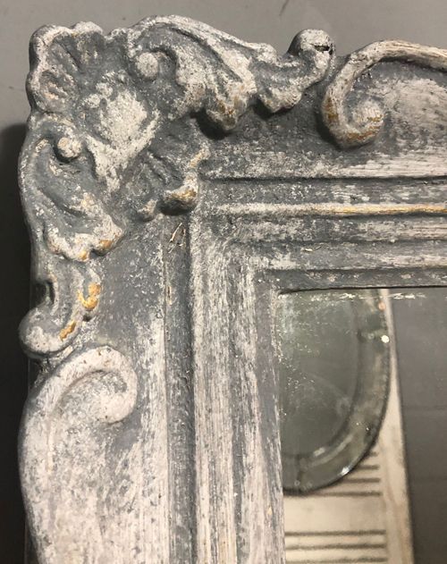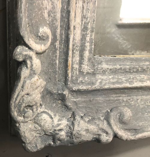 Ref 8128 - Antique French Mirror - Worn grey painted landscape/portrait antique mirror. Original glass. New plywood back. Circa 1900.