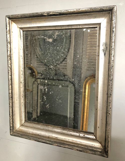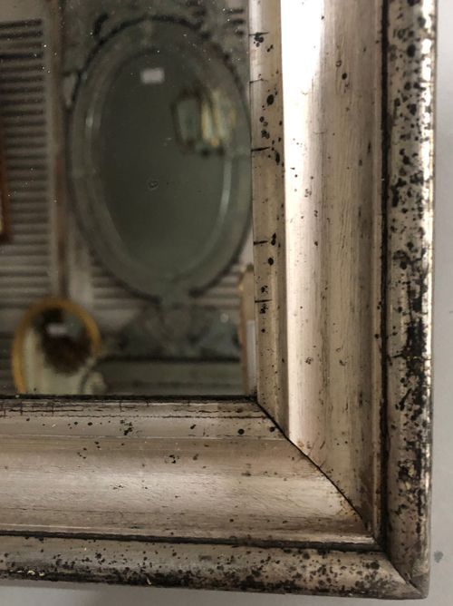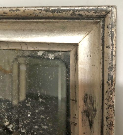 Ref 8153 - Pair of Antique French Mirrors - Pair of silver on black Louis Philippe antique mirrors finished in original silver worn through to black bole in places. Foxed mercury glass and pine board backs. Circa 1850.