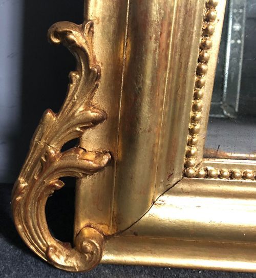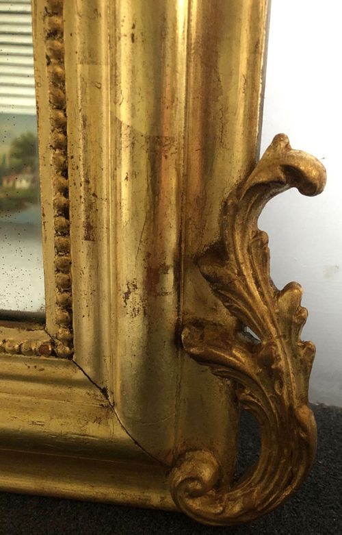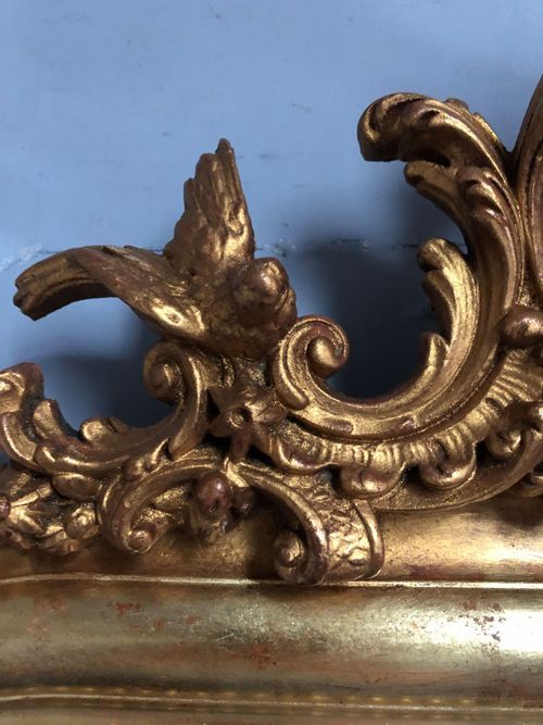 Ref 8165 - Antique French Mirror - Gilt cherub and bird crested Louis Philippe antique mirror. Original lightly patinated glass dated 1897. Original pine board back with one replaced board.