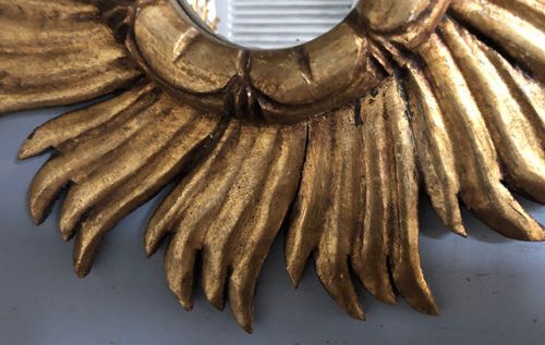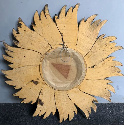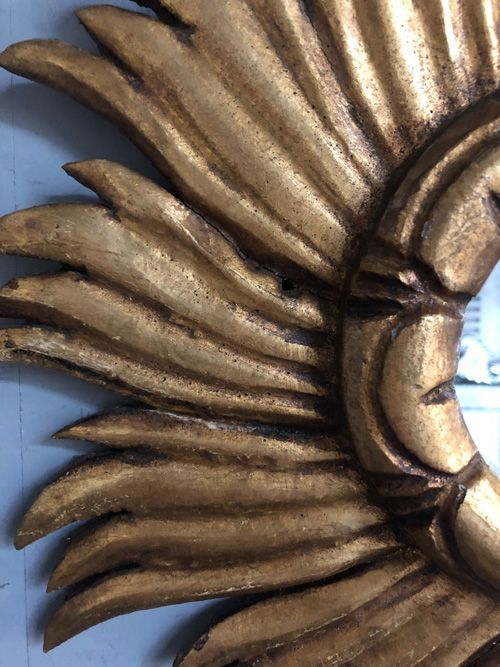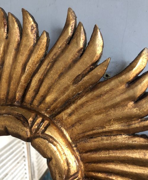 Ref 8174 - Carved giltwood sunburst mirror with original glass. Circa 1950.