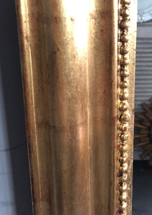 Ref 8192 - Antique French Mirror - Gilt on red Louis Philippe antique mirror. Original glass. Original pine board back. Circa 1880.