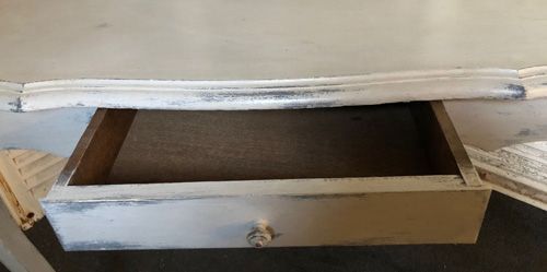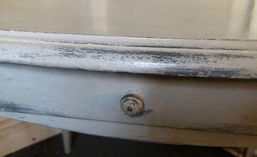 Ref 8200 - Worn grey painted vintage French table with single drawer. Circa 1950.
