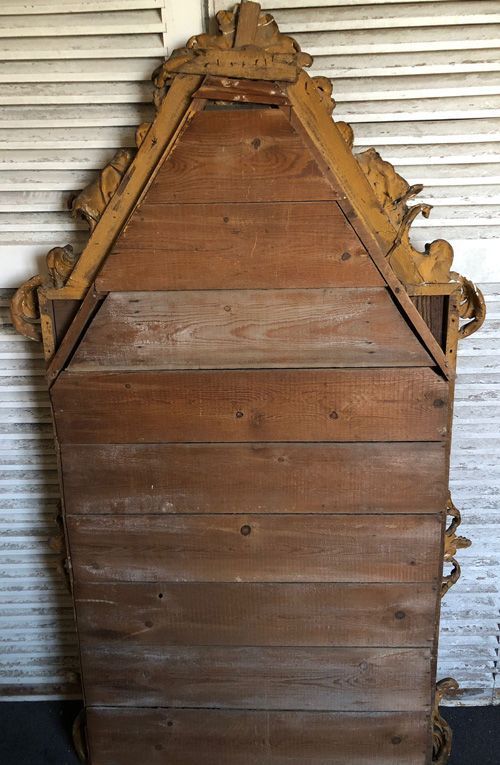 Ref 8207 - Antique French Mirror - Early 19th Century French antique crested margin mirror. Original mercury glass with some patination to outer margins. Original pine board back. Circa 1810.