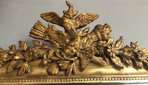 Ref 8222 - Antique French Mirror - Gilt bird crested Louis Philippe antique mirror. Later glass and back. Circa 1880.