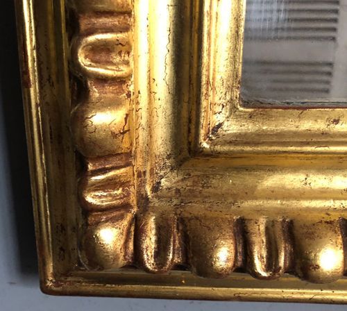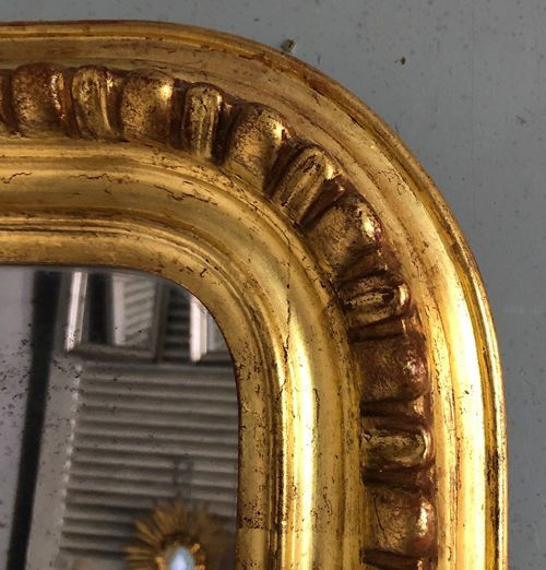 Ref 8266 - Antique French Mirror - Gilt period Louis Philippe antique mirror with gesso decoration to frame. Original mercury glass with some patinated areas to top of plate. Original pine board back. Circa 1850.