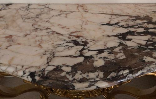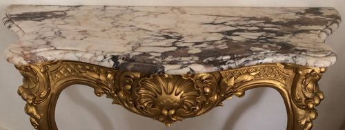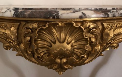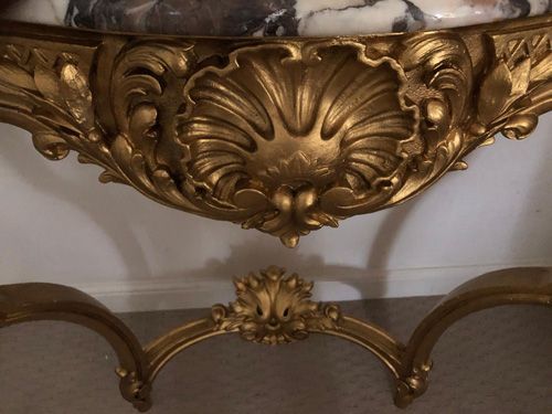Ref 8279 - Large gilt painted carved wood Louis XV period antique French console table with original shaped marble top. Circa 1760.